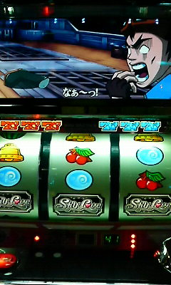 このBIG後のチャンスゾーンはスルーしたが100G後の周期CZでトレジャータイム(RT)ゲット。RT終了後チェリーを引いて転落したがすぐにスイカから赤7をゲット。このBIG後のCZにベル引いて再びRTへ。このRT中にゲチェナが出てRT後に赤7。さらに後2回RTを引いてCZ転落後ヤメ。
