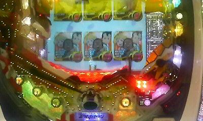12K使って格納庫背景中にミニキャラSU?3+コンパクドライブ予告で赤。3でリーチがかかりレントンとエウレカのプレミア背景予告。さらに、全回転ノブヤ、サクヤVer.に発展。初打ちの初当たりでいきなり全回転。もちろん15R確定。